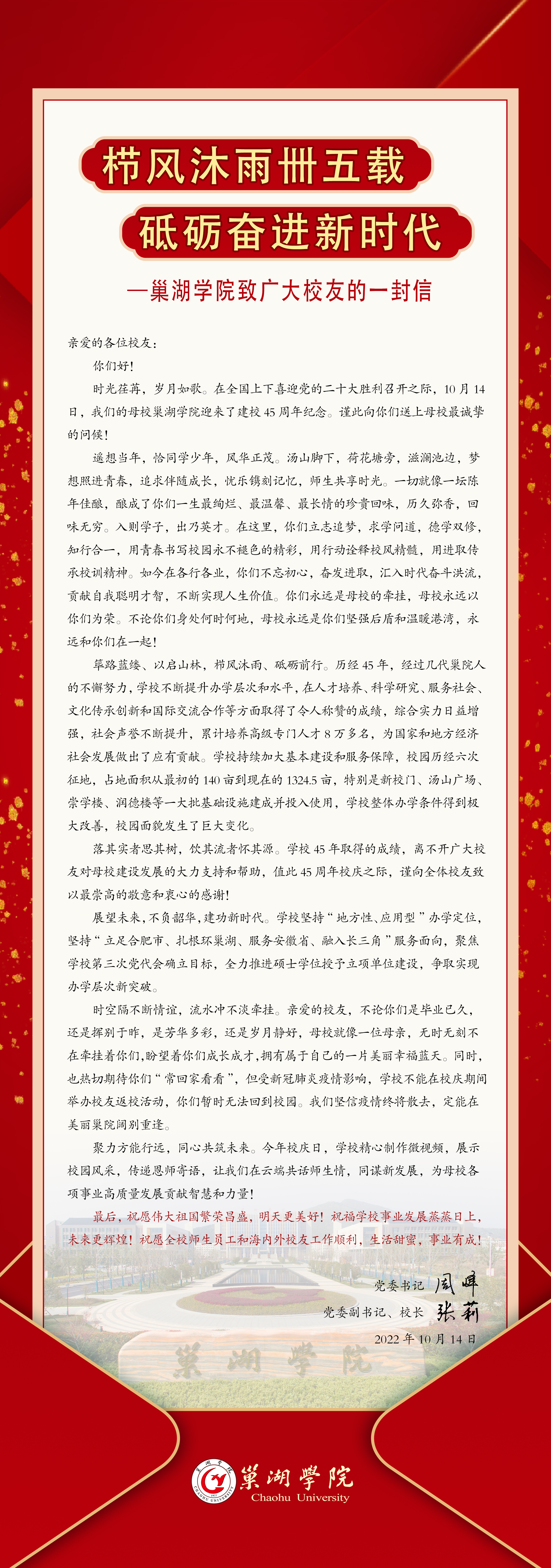 栉风沐雨卌五载 砥砺奋进新时代 必赢626net入口致广大校友的一封信