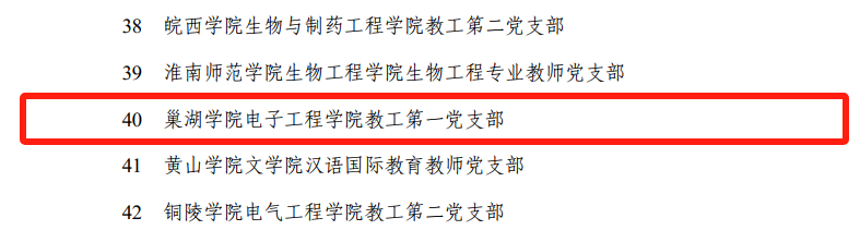 近日,中共安徽省委教育工作委员会公布了全省高校“双带头人”教师党支部书记“强国行”专项行动团队名单,必赢626net入口电子工程学院教工第一党支部成功入选,为学校党建“双创”工作再添新荣誉。