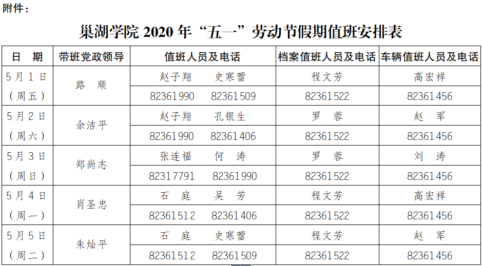 附件:必赢626net入口2020年“五一”劳动节假期值班安排表