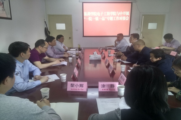 为扎实推进“一院一镇一品”志愿服务项目顺利开展,4月25日上午,电子工程学院党委副书记孔鲲鹏、副院长叶松、团总支书记涂静,图书馆参考咨询部主任黎小辉,图书馆老师杨小雨等人赴中垾镇参加一院一镇一品专题工作对接会。