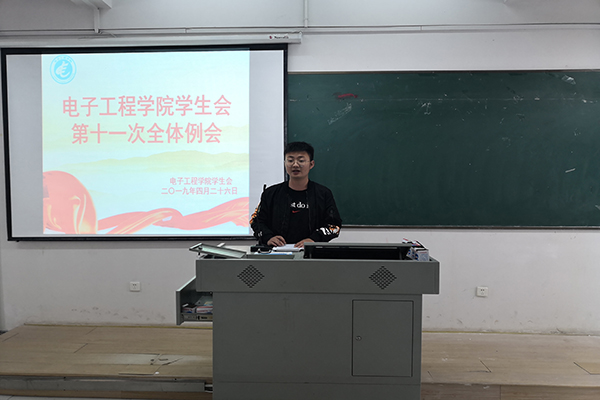 4月26日中午,电子工程学院学生会于慎思楼中202教室召开第十一次全体例会。本次会议由学生会主席顾宇翔主持,主席团成员及各部部长、部员参加。