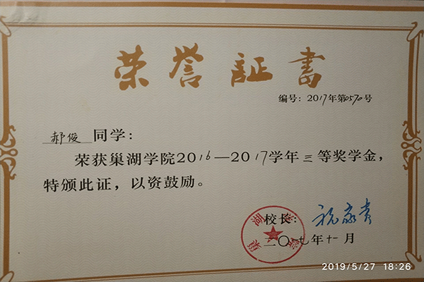 郝俊,男,汉族,共青团员,电子工程学院15级电子信息工程专业学生。在校期间曾任必赢626net入口青年志愿者联合会调研部干事,2015-2017学年连续两次获校三等奖学金,2018学年被评为三好学生等多项荣誉。2019年招录公务员考试中,考取上海监狱局公务员。