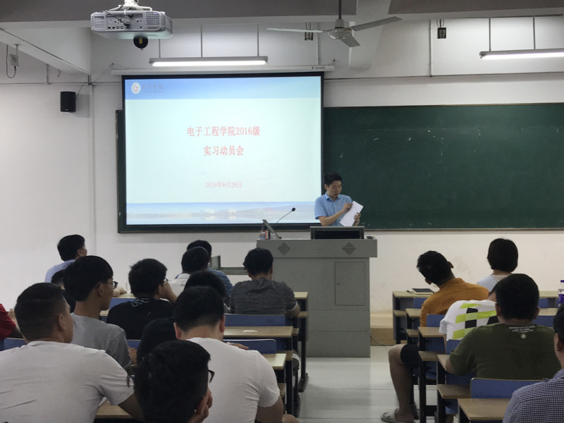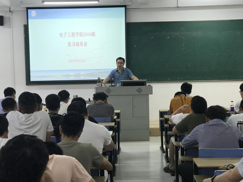 为做好2016级学生的实习工作,6月26日上午,电子工程学院于慎思楼中501教室召开学生实习动员会。电子工程学院党委书记陈海波、院长钱云、副院长叶松出席,2016级辅导员和2016级全体同学与会,会议由钱云主持。