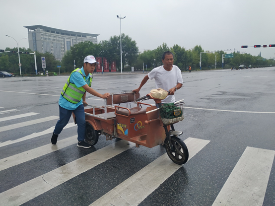 工作期间,志愿者们不仅对来往的车辆进行疏导,并且时刻关注过往的行人,如帮助奶奶推婴儿车、搀扶老人过马路、耐心为需要的路人指明方向等,展现了当代大学生志愿者们无私奉献的美好品质。