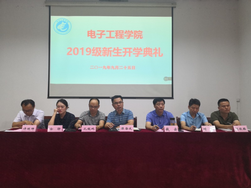 金秋九月,丹桂飘香。9月25日中午1点,电子工程学院于求实楼报告厅举行2019级新生开学典礼。电子工程学院党委书记陈海波、院长钱云、党委副书记孔鲲鹏、副院长叶松、团总支书记涂静、优秀教师代表许明坤、新生辅导员刘振撼和老生代表出席此次典礼。典礼由孔鲲鹏主持,电子工程学院19级全体新生参与。