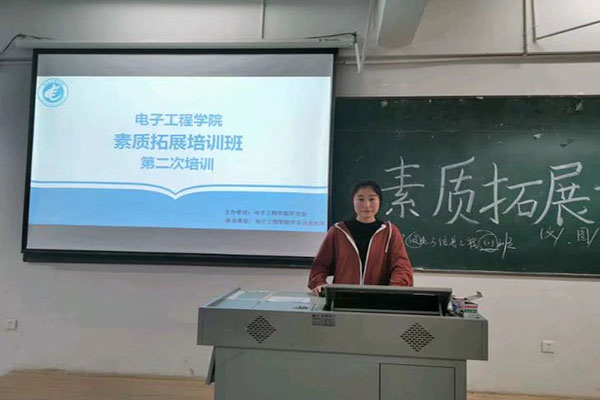 为丰富大学生课余生活,提高同学们的知识水平,10月17日中午,电子工程学院学生会素拓部于在慎思楼中201教室举行素质拓展培训班第二次培训会。本次培训由电子工程学院团总支宣传部部长谢文文主持,电子工程学院学生会干事及19级各班班委参加。