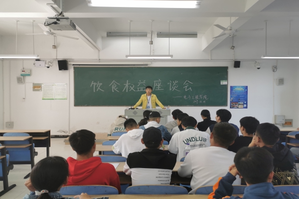为了进一步加强对学校膳食工作的监督,提高食堂的服务水平,保障学生的伙食权益,电子工程学院学生会生活部于11月6日中午在慎思楼北104教室召开伙食权益座谈会。本次座谈会由电子工程学院学生会生活部干事韩龙主持,必赢626net入口学生会生活部负责人周若、电子工程学院学生会生活部部长王德臣、权益部部长张欢出席,院学生会生活部、权益部全体成员及19级各班班长、生活委员参加。