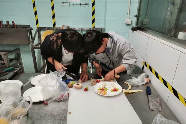 比赛开始前,各组选手充分准备,信心十足,力争在这场美食盛宴中取得优秀成绩。比赛时,选手们将自己所需食材进行简单处理,为接下来烹饪做好准备。在烹饪过程中,各个选手翻炒动作娴熟,在他们精心烹饪下,食物散发诱人的香气,刺激着人们的嗅觉与味蕾。各式新鲜的水果在选手们手中,经过细致的剥切、摆放,显得与众不同。随着各组选手食品以及拼盘制作完成,各具特色的菜肴一一呈现在评委和食客的眼前。选手们向大家简单介绍各个佳肴的特色后,评委们仔细品尝并打出相应的分数,话语中不断表达出对选手的肯定与夸奖。经过两个小时的比拼,本次比赛顺利结束。