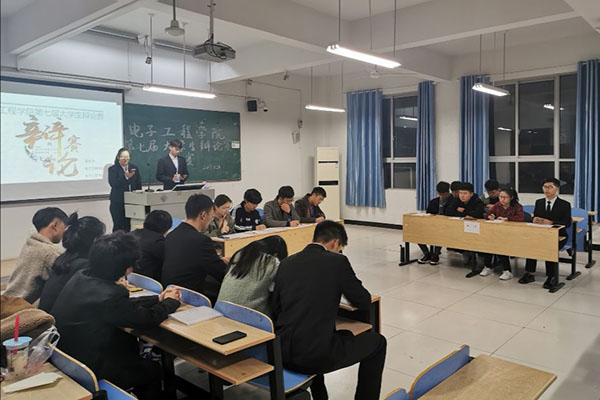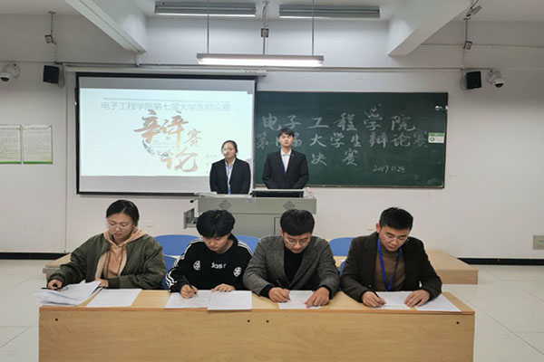 为展示大学生精神面貌,促进“辩论”文化的传播与发展,电子工程学院学生会于11月24日晚在慎思楼中104教室举行第七届大学生辩论赛院内决赛。本次辩论赛的评委组由经济与法学学院学生干部牛犇、丁鑫冉,电子工程学院学生干部祁雨晴、董炳斌组成,进入决赛的全体选手参与。