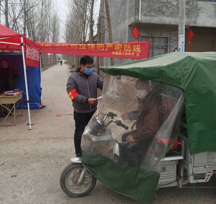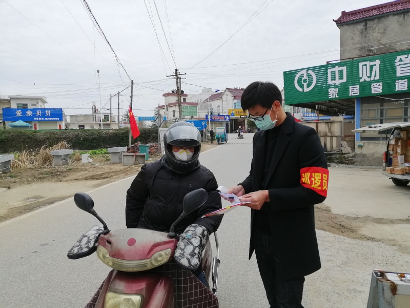 芜湖市,无为市。18级电气工程及其自动化1班班长、团支部副书记肖飞同学在襄安镇吉祥村从事疫情防控志愿服务,工作地点为吉苏路与347国道交叉路口,工作时间从11点半到下午2点半,工作内容包括给村民发放口罩,协助村干部路口值班,检查来往车辆、行人的通行证和身份证是否一致,同时记录车辆的车牌,询问出处和去向,并逐一进行体温测量等疫情防控工作。寒冷的天气无法抵挡他炽热的心。