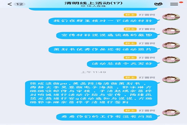 活动开展前期,各部门志愿者共同讨论活动形式。本次活动通过QQ群的线上方式开展,并利用小程序记录参与者的信息。通过参赛者提交上来的作品可以看出,每一份美食都传递着家乡的文化,经过严格审核后,部分优秀作品将通过官Q说说形式展出。