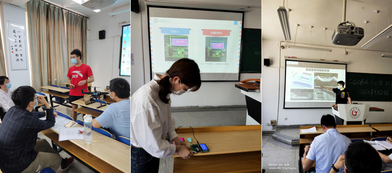 在答辩过程中,参加毕业答辩的同学依次上台就自己的选题、主要内容、设计思路、设计方法、关键技术、结果演示等方面进行了6分钟左右的个人展示。随后答辩小组老师针对学生的毕业论文,逐一进行了点评和提问,并就论文中存在的主要问题提出了修改意见或建议。通过学生与老师的相互配合,此次答辩整体情况平稳有序,答辩结束后,各答辩小组老师进行合议确定学生的最终答辩成绩。