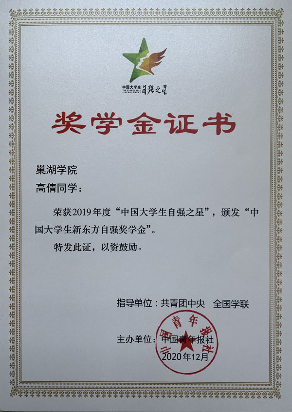 坚持济困、扶志,推进资助育人。学院严格按照国家和学校奖助文件精神和相关要求,按照公开、公平、公正的原则,成立评审工作领导组,认真履行各项评审程序。开展建档立卡家庭学生就业帮扶工作,为困难生提供勤工助学岗位。暑假开展“百千万”资助走访慰问困难学生家庭活动。辅导员牛美芹申报的“轻羽清风”资助育人名师工作室获省教育厅批准立项(2020年3月11日立项,项目经费10万元),自立项以来,工作室积极开展资助育人活动。鼓励、组织受助学生参加志愿活动,坚持扶贫与扶志相结合,培养学生责任意识、感恩意识。2018级电气工程及其自动化专业高倩同学荣获“中国大学生自强之星”荣誉称号。