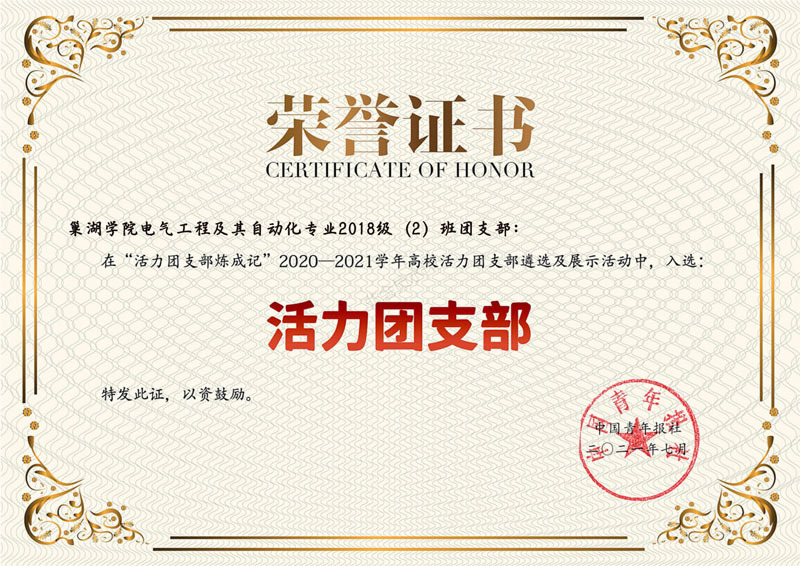 团学工作成绩突出。以党建带团建,扎实推进团学工作。团总支、学生会群策群力,开展主题鲜明、健康有益、丰富多彩的活动。学院团总支在学校近三年考核中连续获得优秀等次,学生会多次获得学校优秀学生分会。18级电气自动化2班团支部荣获全国“高校活力团支部”荣誉称号。