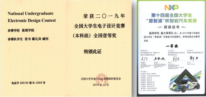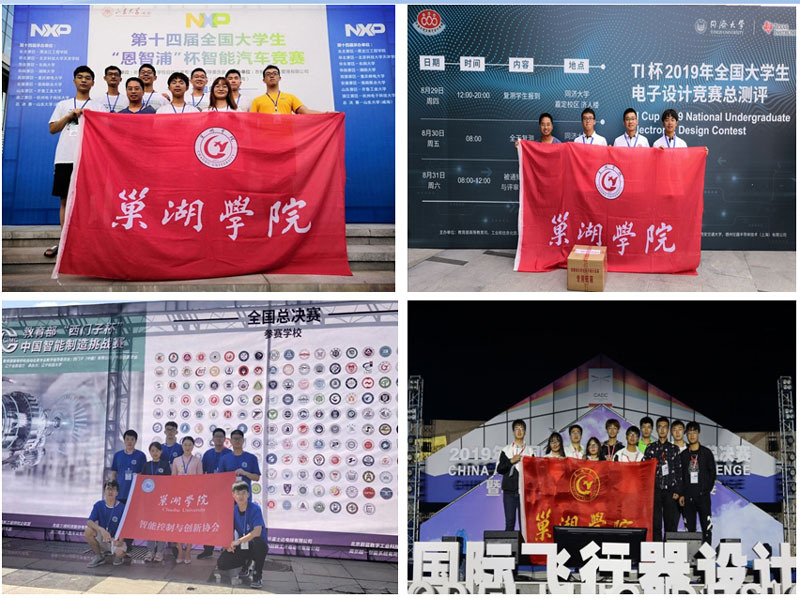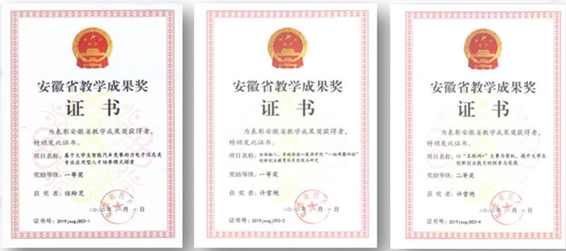 以赛促学,成果显著。积极组织指导学生参加“西门子杯”全国大学生中国智能制造挑战赛、中国国际飞行器设计挑战赛、全国大学生智能汽车竞赛、全国大学生电子设计竞赛、全国应用型人才技能大赛、安徽省百所高校百万大学生科普创意创新大赛、安徽省“互联网+”大学生创新创业大赛、“挑战杯”安徽省大学生课外学术科技作品竞赛、安徽省高校物联网应用创新大赛、安徽省大学生职业规划设计大赛等各类学科与技能竞赛。近年来,获省级以上奖项近300项。