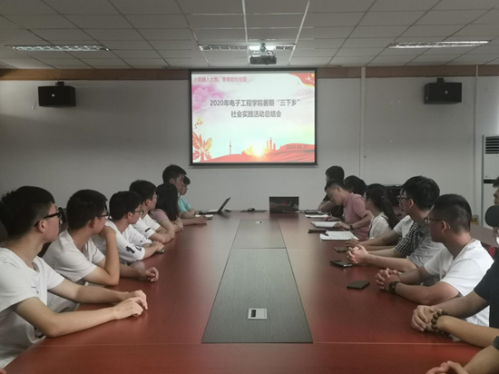 8月31日中午,电子工程学院于笃行楼会议室召开大学生暑期“三下乡”社会实践活动总结会议,会议由电子工程学院团总支书记涂静主持,团总支副书记刘振撼、各团队主要负责人参加。