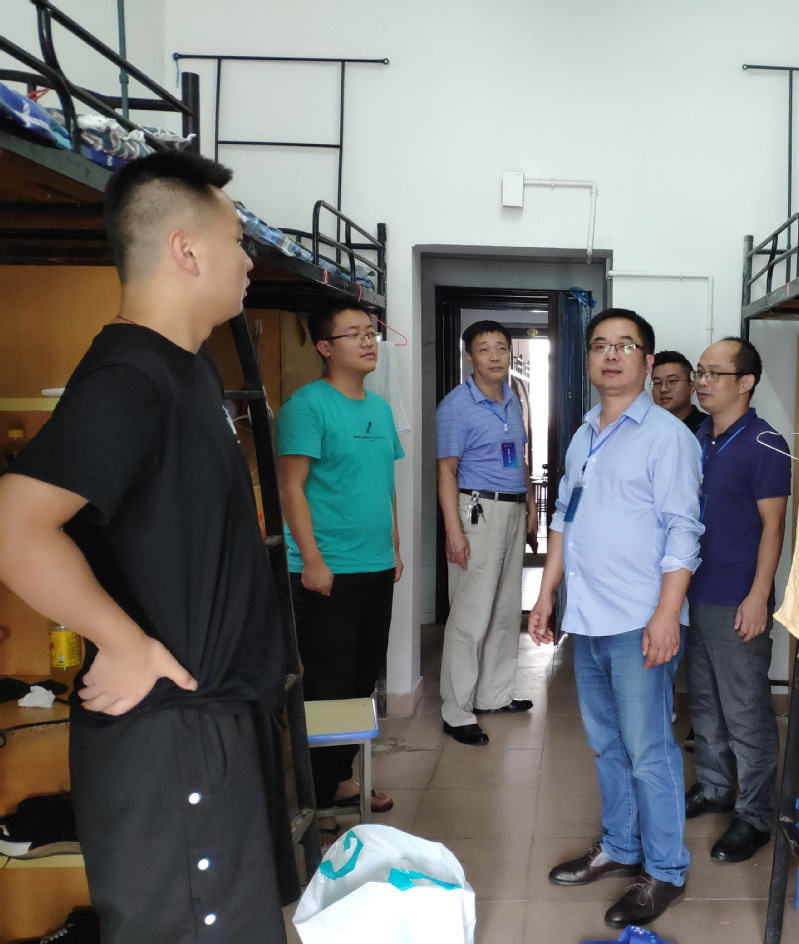 在走访过程中,陈海波与新生们亲切交谈,并询问他们对学校的新环境是否适应、对食堂的饭菜是否习惯。随后,陈海波提醒新生要提高安全防范意识,谨防各类诈骗,注意宿舍用电安全,禁止使用违规用电器。