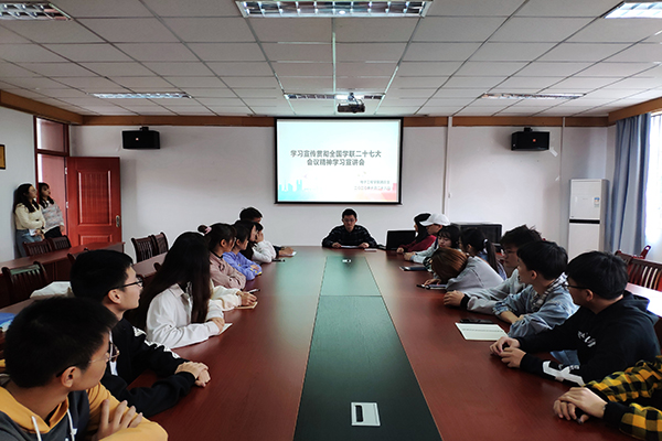 为深入学习贯彻全国学联第二十七次代表大会主题,树立“坚定跟党走,奋进新时代”的重要精神,电子工程学院于10月10日在笃行楼二楼会议室召开了学习贯彻全国学联二十七大会议精神专题交流会。此次会议由学生会副主席邵祥龙主持,电子工程学院学生会、团总支、青协各部门负责人参加。