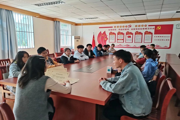 为鼓励素质拓展培训班优秀学员,电子工程学院团总支于11月11日中午在笃行楼二楼会议室召开素拓班培训颁奖总结大会。此次会议由电子工程学院团总支书记涂静主持,电子工程学院团总支各部门部长,20级各班团支书以及获奖学员参加。