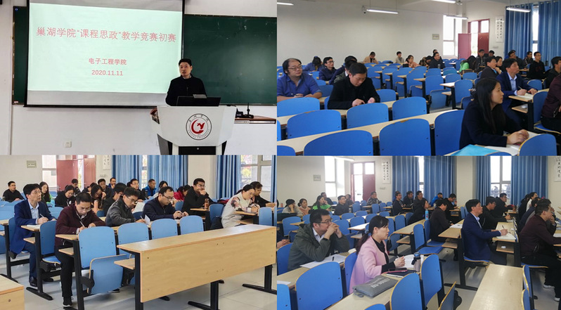 本次比赛主要以课堂教学设计、现场教学展示为主。各位老师通过巧妙的课程设计,深入挖掘课程中蕴含的思政元素,结合各门课程的学科特色,以不同的方式将思想政治教育有机融入到课堂教学中,选题典型,立意新颖,讲解深入浅出,教学风格各具特色,切实做到了专业课程教学与思政教育的有效对接。经过激烈角逐,5位评委老师公平公正的评判,综合评价,推选李素平、陈初侠两位老师代表电子工程学院参加学校“课程思政”比赛。