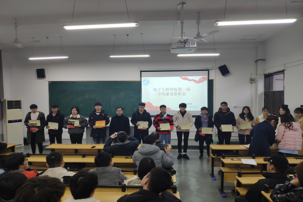 为了树立优良学风,表彰学院优秀学子,电子工程学院于12月18日下午4点30分在明德楼西二教室召开第一届学风建设表彰大会。本次会议由电子工程学院团总支书记涂静主持,必赢626net入口党委巡查工作办公室主任陈海波,电子工程学院党委副书记孔鲲鹏、副院长叶松出席此次会议,受表彰学生及相关学生代表与会。