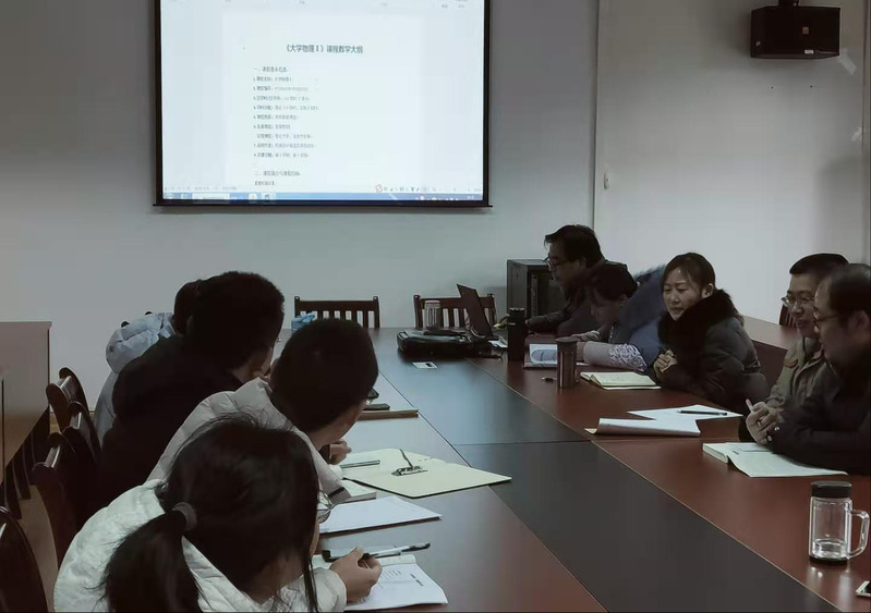朱爱国主任就认证专业《大学物理》教学大纲的修改、课程思政元素如何体现、考核评价方式的调整等工作做了解释和说明,与会老师就这几个当前教学中的热点问题展开了热烈讨论,大家畅所欲言,各抒己见,提出了不少好的意见和建议。会议部署了有关文件起草工作。