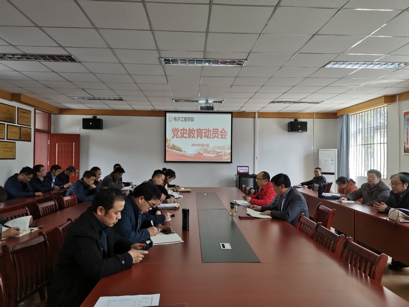 3月24日下午,电子工程学院在会议室召开党史学习教育动员会,学院全体教职工参加了会议。会议由院长钱云主持。