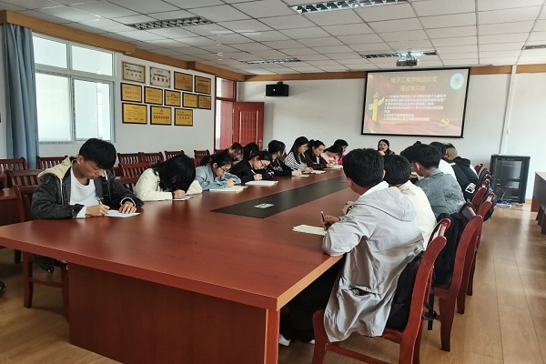 为增强基层团支部理论学习,明确未来各支部工作方向,3月26日中午,电子工程学院于笃行楼二楼会议室召开团总支理论学习会。本次会议由学院团总支副书记李灵恩主持,团总支书记涂静,团总支委员吴健、各班级团支书和班长与会。