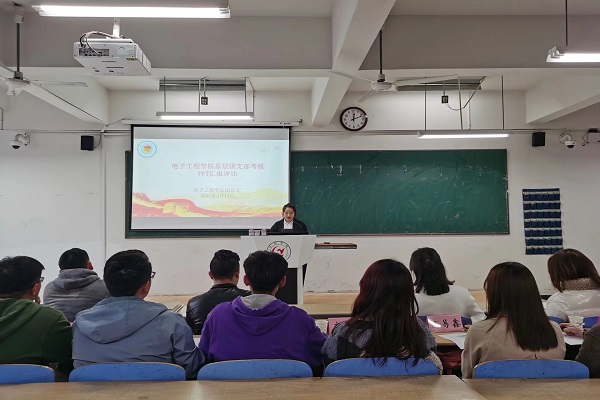 为加强基层团支部建设,增强各团支部内部凝聚力,4月14日中午12:30分,电子工程学院于慎思楼中101教室开展基层团支部考核PPT汇报评比活动。此次活动由团总支副书记李灵恩主持,团总支书记涂静,团总支副书记钱程,辅导员刘振撼、孙一帆,18级学生代表担任评委,19、20级学生代表参与。