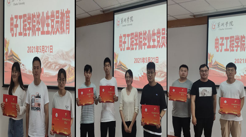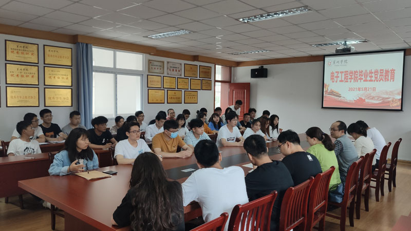 为做好2021届毕业生党员教育管理工作,加强党史学习教育,提升毕业生党员的党性修养和理论水平。5月21日下午,电子工程学院于笃行楼二楼会议室召开了2021届毕业生党员教育大会。会议由学院党委副书记孔鲲鹏主持,学生党支部书记涂静、王正创、刘振撼,组织员王静与会,电子工程学院全体毕业生党员参加。