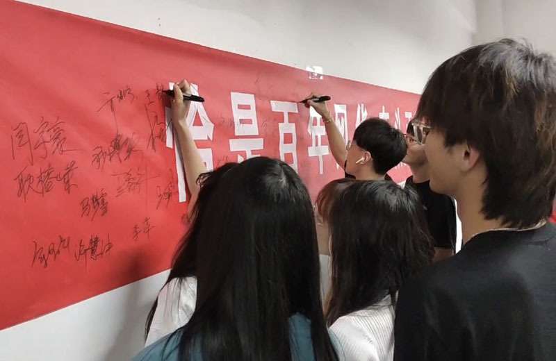 分享会上,与会人员参与文化墙签名活动,营造积极进取、自强不息的氛围。