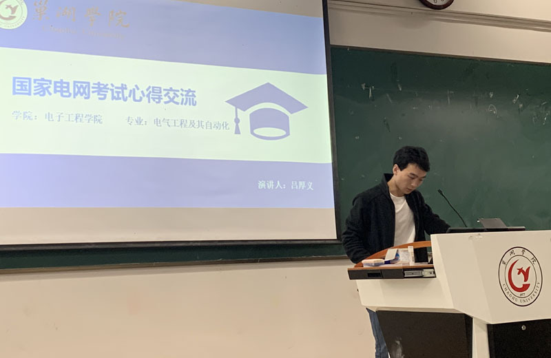 马龙从专业特点出发,给出了自己对于专业学习的看法,并推荐教辅资料。李志伟告诉同学们在学科复习方面要依据考试大纲,以免走弯路,同时告诉大家树立起考研信心,永不言弃。胡华则向同学们分享了自己考研调剂的波折过程,她说:“考研就是在考验人的心态,不到最后一秒都不要放弃。”吕厚义详细和大家分享了国家电网的报考难度和报录比,建议尽早规划好复习备考方案,并推荐了相关资料。