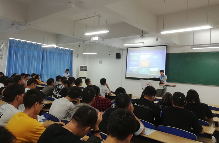 卢伟首先介绍了在学校的学习经历与感受,接着介绍了公司的企业文化、招聘岗位、薪资福利、工作环境、职业发展、住宿饮食、文化活动等,并就同学们关心的问题进行一一回答。