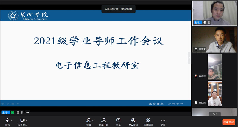为推进全员、全过程、全方位育人,强化大学生学业指导,发挥学业导师在大学生成长成才过程中的重要作用,切实提高人才培养质量,2021年10月17日,电子信息工程教研室召开学生学业导师工作专题会议。会议由电信教研室主任孔兵主持。