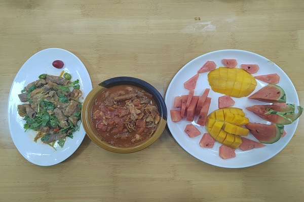 比赛分为两个环节,水果拼盘和现场烹饪。比赛开始,参赛选手们个个精神饱满,展现出最精湛的厨艺。在比赛过程中,各组选手都精心地准备自己的参赛作品,不到几分钟,一盘盘精致的水果拼盘就展现在我们面前。在现场炒菜环节,选手们先把菜品进行清洗处理,然后切菜完进行烹饪,最后装盘。选手们均在规定时间内完成比赛,现场的弥漫着诱人的香味。最后将菜端在评委面前进行解说,在由评委品尝打分。现场气氛十分活跃,评委和观众在品尝完菜品和水果拼盘之后,通过对菜品的色泽外观,口感味道,特色创意和健康营养等方面进行综合评分。