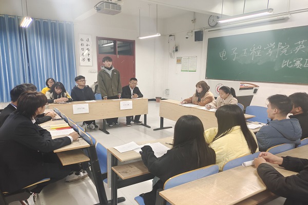 为了丰富同学们的大学生活、激发同学们对英语学习的兴趣,11月27日晚6点半“外研社”杯全国大学生英语辩论赛电子工程学院院级选拔赛于慎思楼中203、204教室举办。本次比赛由电子工程学院学生会学科部主办,外国语学院20级常紫彤、刘倩文同学担任本次比赛的评委,电子工程学院21级各班部分人员参加。