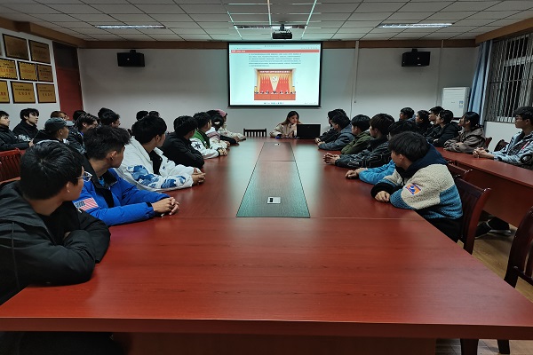 会议伊始,胡紫薇简要介绍此次会议目的,即认真学习党的第十九届六中全会精神,紧跟时代步伐。紧接着,胡紫薇带领大家阅读《中共中央关于党的百年奋斗重大成就和历史经验的决议》,并希望同学们牢记历史使命,认真学习科学文化知识,为实现第二个百年奋斗目标事业添砖加瓦。随后,胡紫薇与参会人员一同观看“中央举行新闻发布会解读党的十九届六中全会精神”视频,让同学们深刻感受党的历史发展。最后,胡紫薇希望同学们知党爱党,共担历史使命。