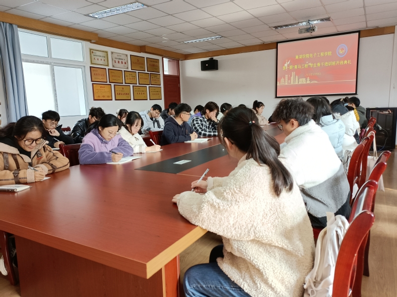 为了深入学习贯彻习近平新时代中国特色社会主义思想,提高青年学生骨干的政治素养、理论水平及实践能力,12月9日中午,电子工程学院于笃行楼二楼会议室举行第一期“青马工程”培训班开班典礼。此次开班典礼由电子工程学院团总支副书记孙一帆主持,电子工程学院党委副书记孔鲲鹏出席,“青马工程”培训班全体学员参与。
