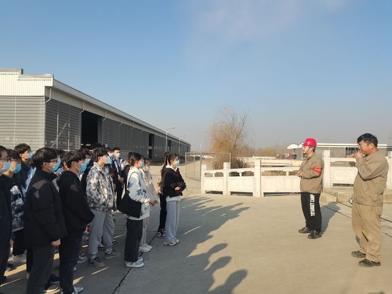 本次认知实习的第一站是巢湖市鑫皖新能源有限公司,受到了公司人事经理刘熔和生技部经理助理兼电仪专工杨斌的亲切接待,杨斌讲解了公司的发展历史、公司的发展规模以及生物质发电厂的工作原理,然后在他们的带领下,同学们分批依次参观了公司的物料储存仓库、汽轮发电机组、生产监控车间、生物质能循环流化床锅炉等配套的设施。