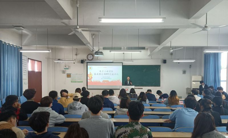 为推动团支部发展,加强基层团支部建设,3月30日中午,电子工程学院团总支于慎思楼中203教室开展基层团支部述职汇报。此次活动由团总支副书记苏悦主持,团总支书记涂静、团总支副书记孙一帆,辅导员汪军、卓潇、刘婷婷、刘政、梁哲铭,19级学生代表担任评委,20、21级各班级学生代表参与。