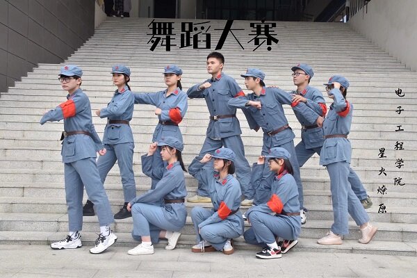 电子工程学院表演舞蹈《星火燎原》和《骁》两个节目。《星火燎原》一组身着军装,配合坚毅果断的动作表述了抗战时期革命军的热血奋斗,用舞蹈抒发了对革命先辈的敬佩之情。《骁》则是通过富有个性的民族舞和激昂的音乐,展现了选手们的热血活力。最后,通过选手们的不懈努力,《骁》和《星火燎原》分别在此次舞蹈大赛中获得了二等奖和三等奖的好成绩。