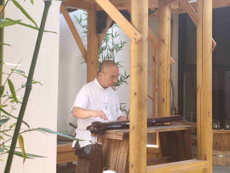“斫琴大繁至简,学琴永无止境”,团队来到檏拙堂古琴舍,有幸看到琴师朱志刚抚琴。由于对古琴的痴迷,朱志刚多次前往福建、河北、北京请教古琴方面专家。不仅弹奏古琴,朱志刚还把精力放在了古琴的斫制上。