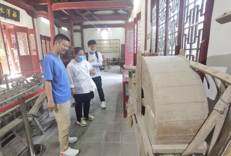 团队按照前期准备的调研规划,首先前往长临河民俗文化馆,文化馆以“留存民间物件,展示农耕文化”为宗旨,分为实用器皿厅、生活用品厅、生产工具厅、匠人工艺厅、农家起居厅、民间佛堂等部分。在指导教师卓潇的耐心讲解下,实践队员们认识了不少农耕器具,这也更加坚定了大家继承、发扬和传播地域特色文化的决心。