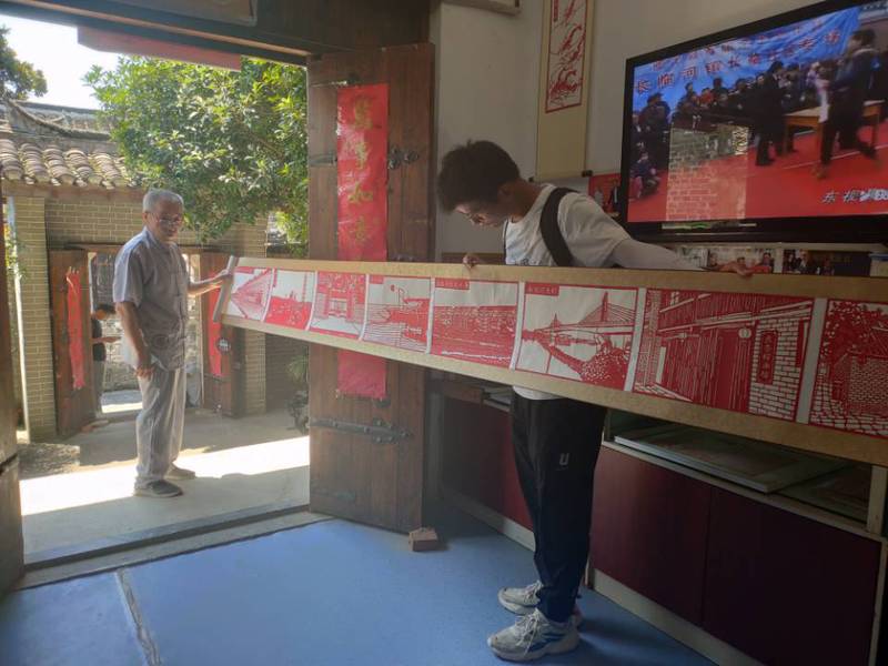 艺术来源于生活,生活就是艺术,团队有幸到非遗传承人牛家海的家中进行参观交流。交谈中,我们深刻感受到牛老师对剪纸艺术传承的热爱,他希望剪纸艺术能够得到普及,希望祖国的传统工艺能够得到传承,希望让孩子们参与到担负起保护剪纸手艺的重担中。
