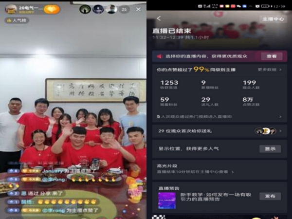 团队成员通过“寻味中垾”抖音账号进行美食直播,带领观众沉浸式体验美食,并介绍中垾的风土人情和乡村景色,在近一个小时的直播中,收获8万点赞量。