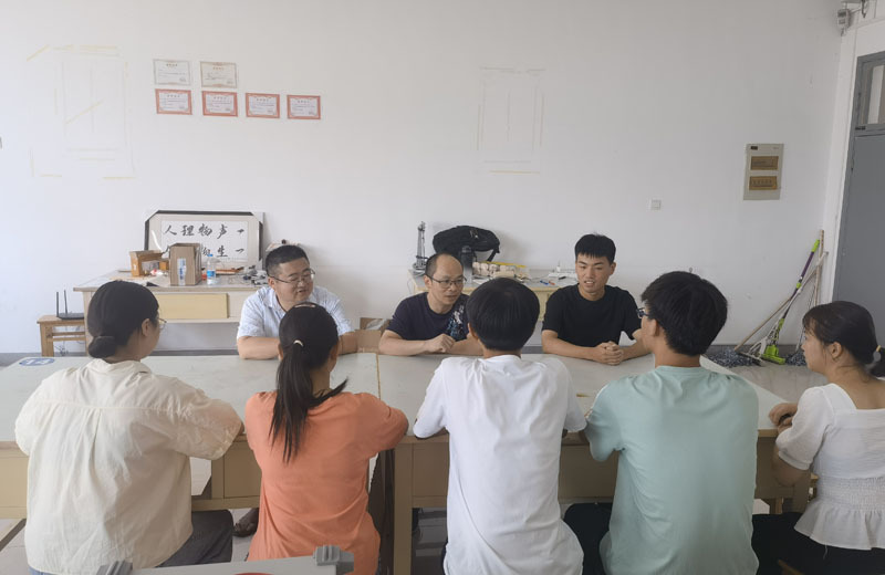 2022年7月10日上午,电子工程学院党委副书记孔鲲鹏、大学物理创新协会指导老师笪诚教授到致知楼大学物理创新协会实验室走访看望暑期留校同学,了解协会学生对备战安徽省师范生技能竞赛(演示教具制作)的准备情况。