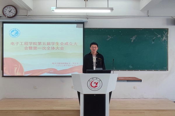 为了加强新成员对电子工程学院学生会的了解,增进各部门之间的交流。电子工程学院学生会于10月19日中午在慎思楼中203召开第五届学生会成立大会暨第一次全体大会。此次大会由电子工程学院学生会主席团成员陆金圣主持,团总支书记涂静及全体学生会成员参与。