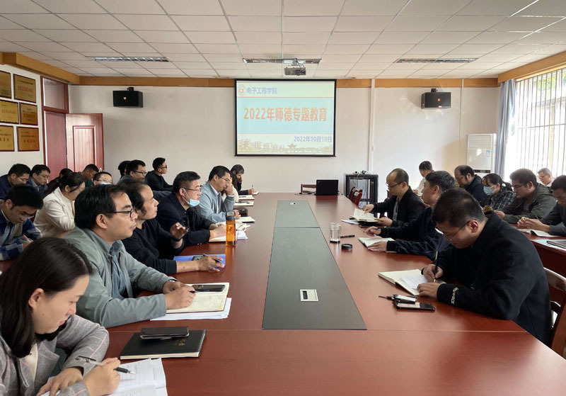 为学习师德优秀典型,激励全体教师对标先进、见贤思齐,集中开展警示教育。10月19日,电子工程学院在会议室开展师德专题教育,学院领导班子及全体教师参会。