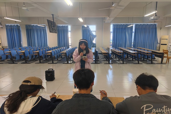 比赛开始前,工作人员引导参赛选手在等候区准备,并且进行抽签排序。随后,比赛正式开始,参赛选手们依次进行展示节目。随着最后一位参赛选手表演的结束,此次比赛顺利结束。最终获奖同学的名单如下:一等奖:江家民;二等奖:刘程炜、路俊杰;三等奖:丁贺伊达,杜玉文,江坤。