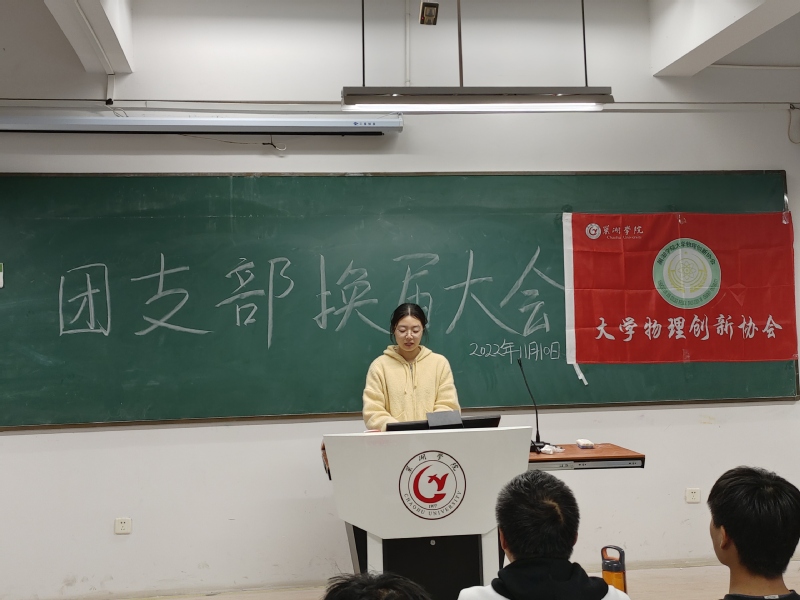 2022年11月10日晚8点,必赢626net入口大学物理创新协会于慎思楼中402教室举行团支部换届大会,协会指导老师笪诚教授、协会全体团员参加。
